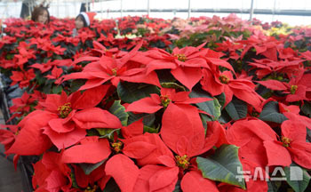 クリスマスを前に大きく花開いたポインセチア