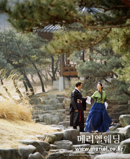 23日に挙式予定の二人は、先日南山の韓屋村で撮影に臨んだ。