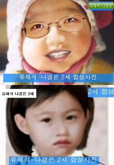 この合成写真は、以前この番組で作成、公開されたもので、ユ・ジェソクの目とナ・ギョンウンの鼻、二人の口を合わせて作った。