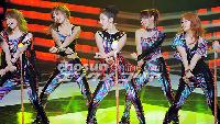 14日午後、SBS公開ホール(ソウル市江西区)で、KARAの3rdアルバム「STEP」発売記念ショーケースが行われた。写真は、華やかなステージを繰り広げているKARAのメンバー。