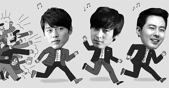 制作者たちは3人を獲得するため、それぞれ除隊3-6カ月前からメールや小包などでシナリオを送っていた。韓国ドラマ制作会社協会のパク・サンジュチーム長は「企画中の作品はたぶん、この3人のキャスティングを最優先に考慮しているので、それなりのシナリオはすべて彼らの手元に渡っているだろう。ダメもとで送ってみようという状況」と話した。