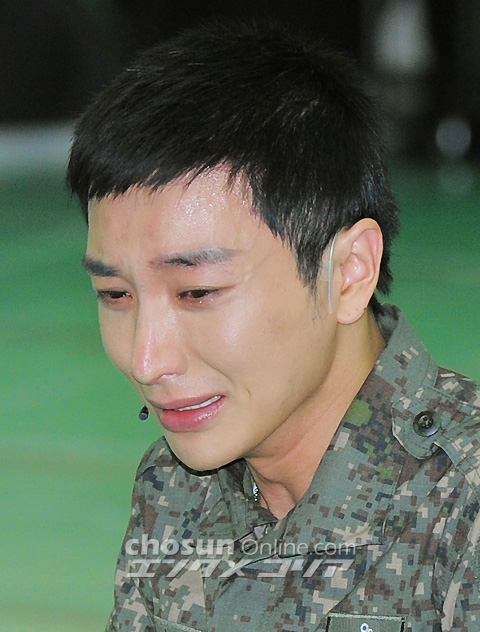 ▲人気アイドルグループSUPER JUNIORのリーダー、イトゥク(30)=本名:パク・チョンスが、ミュージカル「The Promise」の練習中に涙を流している(2012年12月27日撮影)。