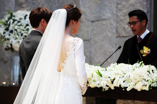 女優イ・テラン(37)の結婚式の写真が公開された。これは、所属事務所スターページ・エンターテインメントが1日に行われた式の写真を公開したものだ。