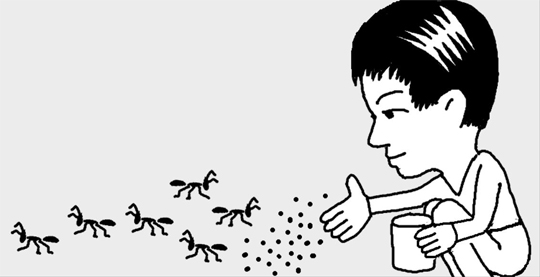 家の中にアリが出たときは、アリが通る道に塩をまいておくと、そのにおいでアリが少なくなる。