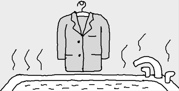 スーツがしわになってしまったら、風呂に入った後に湯船のふたを開けたままにし、その上にスーツを掛けておくと、蒸気でしわがなくなる。