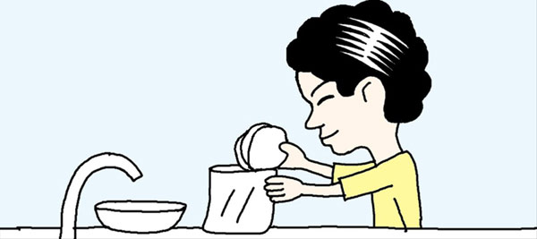 ぬるま湯とクレンジングフォームを入れたビニール袋に化粧用スポンジ(パフ)をいくつか入れ、外から手でもむときれいになる。
