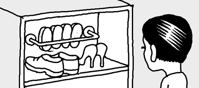 赤ちゃんや子どもの小さな靴はシューズラックにタオルハンガーを取り付け、そこにはさむように収納すると、取り出しやすくてスペースも有効活用できる。