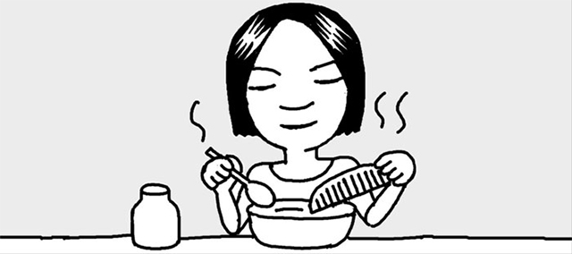 お湯を入れたボウルに重曹を大さじ1杯入れ、プラスチック製のくしを1-2時間浸けておけば、くしに付いた頭皮の角質の汚れなどがよく落ちる。