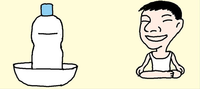 水を70%ぐらい入れて凍らせた2リットル入りのペットボトルをボウルに置いておくと除湿効果がある。空気中の水分が水に変わってペットボトルのまわりに水滴として付くためだ。