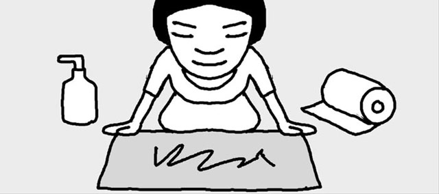 乳幼児用のプレイマットやヨガマットにボールペンで落書きなどされてインクが付いてしまったら、重曹をまいてぬるま湯でぬらしたキッチンタオルで覆い、半日ほど置くときれいに消える。