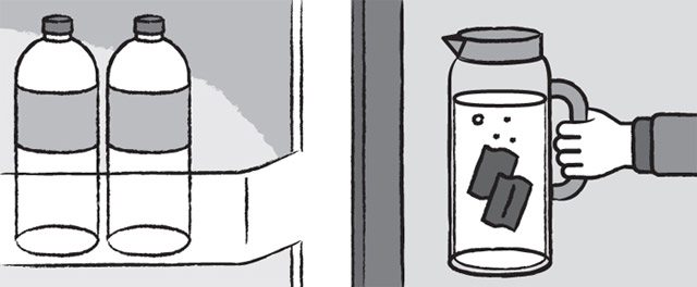 ピッチャー(水差し)に昆布と水を入れて冷蔵庫に5-6時間置いておくと、だしが簡単にとれる。