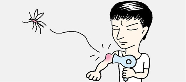 蚊に刺された所にヘアドライヤーの熱風を当てると、かゆみが和らぐ。蚊の唾液の成分である「ギ酸」が約50℃で変化するためだ。