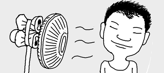 扇風機を長時間つけていて熱い風が吹いてくる時は、空のビール缶をつぶしてモーター部分にテープで貼り付けておくと、熱くなったモーターをアルミ缶がある程度取ってくれる。