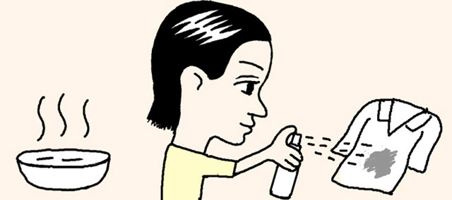 白い服に汚れがついた時は、ヘアスプレーをかけた後、5分間ほど待ってからお湯ですすぐと、スプレーのアルコール成分が汚れを落としやすくしてくれる。