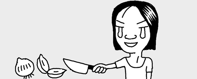 タマネギを切る時は、催涙成分が多く入っている根の部分を最後に切ると、涙が出にくくなる。