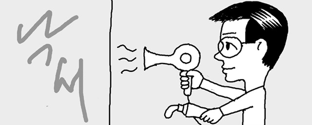 クレヨンの落書きが家具に残ってしまったら、ドライヤーで熱風を当てて溶かした後、歯磨き粉でふき取ると、簡単に落ちる。