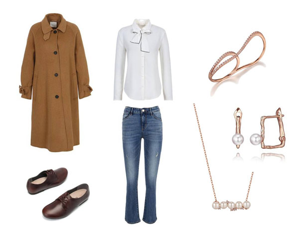 真珠のアクセサリーはフェミニンなスタイルだけでなく、カジュアルなコート、スキニージーンズなど、さまざまなスタイルに合わせることができる。カジュアルまたはシックなルックに合わせると、よりいっそう洗練されていてソフトなイメージをアピールすることができ、真珠とローズゴールドの組み合わせはさらにトレンディーなムードを演出可能。