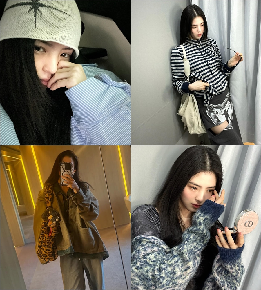 公開された写真を見ると、アイボリーのニット帽をかぶって自撮りしている姿からクールなファッション、化粧品を手に鏡を見つめる様子など、さまざまな瞬間が収められている。