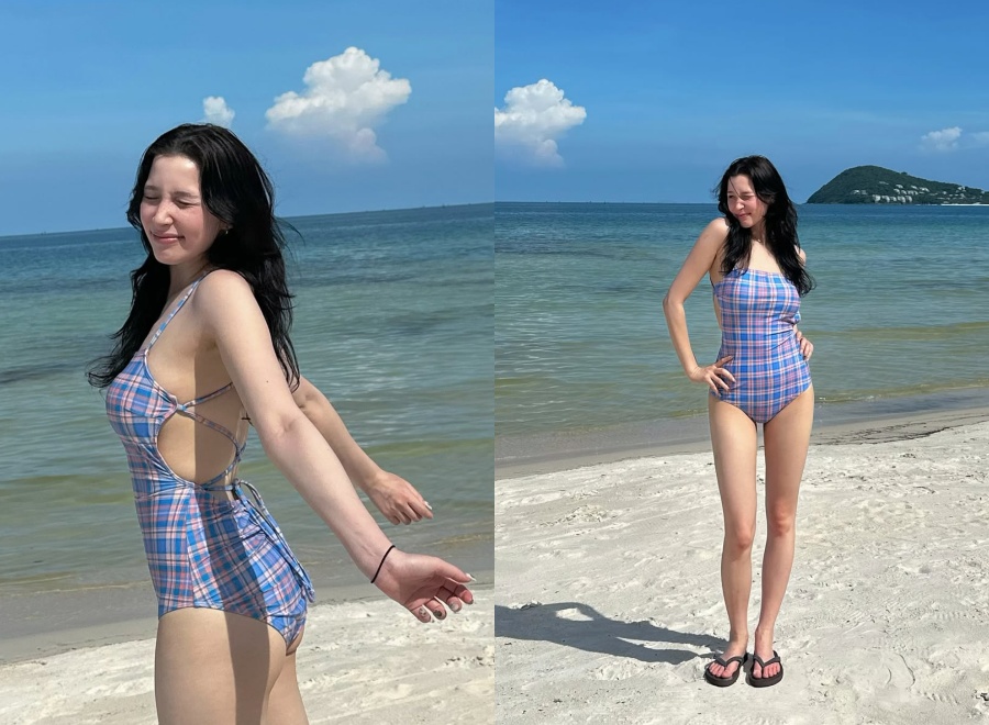 公開された写真を見ると、チョン・リアはフーコック島を旅行中、海水浴を楽しんでいる。チェック柄のワンピース水着を着たチョン・リアは、スリムなボディラインを誇っており、目を引く。キュートな水着かと思ったら、サイドや背中が細いひもで結ばれており、後ろ姿がセクシーだ。
