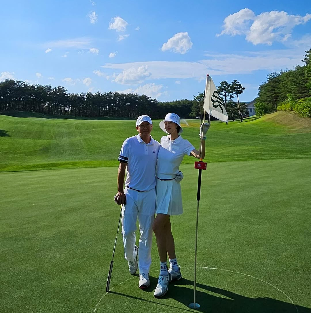 写真には、夫とゴルフを楽しむチェ・ヨジンの姿が収められている。二人は並んで立って仲良くポーズを取り、和やかな雰囲気を漂わせている。ゴルフ場で清純な美しさ、すらりとしたボディラインをアピールするチェ・ヨジンだ。