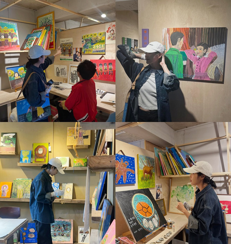 済州の高齢女性作家9人は今回の展示会で、NETFLIXシリーズ『おつかれさま』の感動的なシーンを見て描いた絵を披露した。