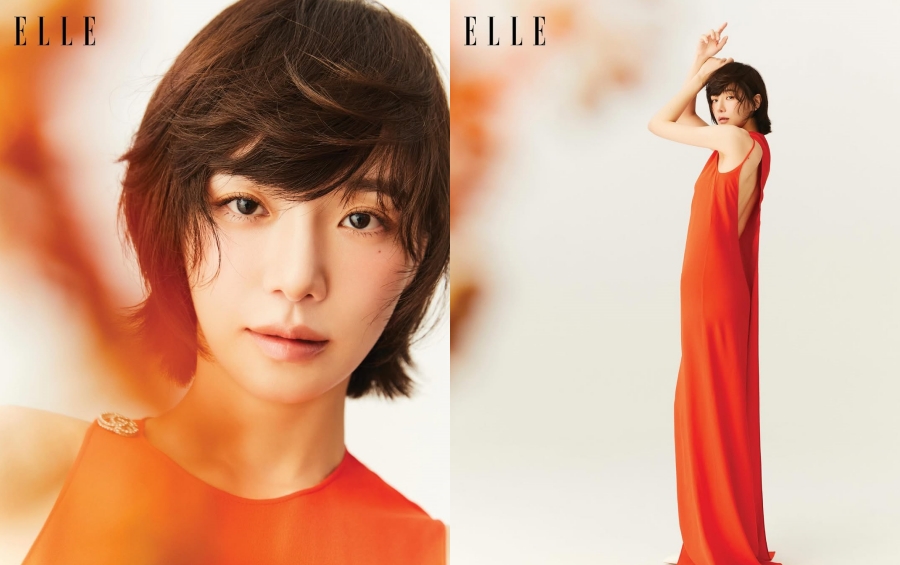 公開された表紙&グラビアのパク・ギュヨンはオレンジ色のシルクドレスを着た華やかなビジュアルに注目が集まっている。