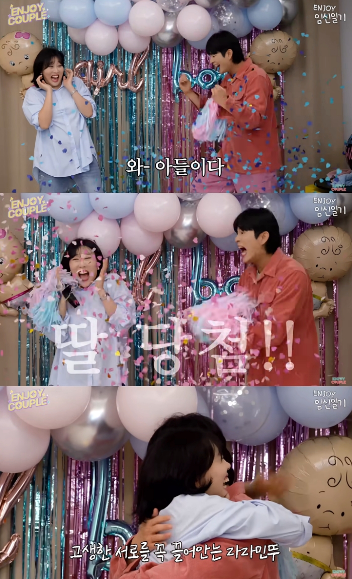 続いてソン・ミンスがもう一つの風船を割ると、娘を意味するピンクの紙が飛び出した。すると、二人は抱き合って涙を浮かべた。ソン・ミンスは「とても感謝しているし、かわいがってしっかり育てたい」とした上で「ララもお疲れさま」と語った。