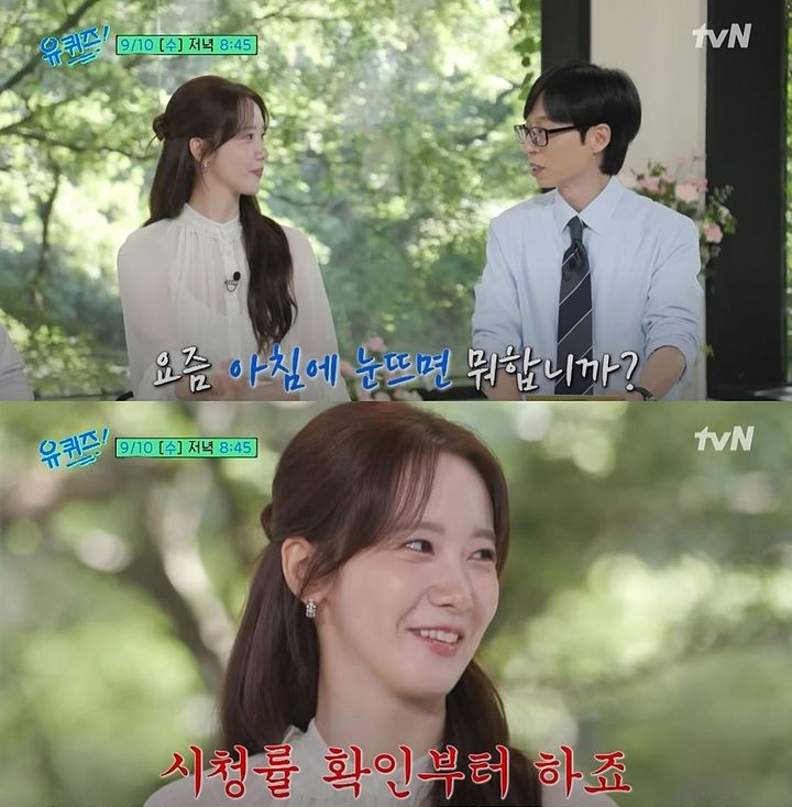 10日放送のバラエティー番組『ユ・クイズ ON THE BLOCK』(tvN)にユナがゲスト出演。進行役のユ・ジェソクがオープニングで「最近、朝目覚めると何をしているの?」と尋ねると、ユナは「まず視聴率をチェックする」と答えた。本人の名前よりも、作品のキャラクター名(ヨン・ジヨン)で呼ぶ人が多いという。