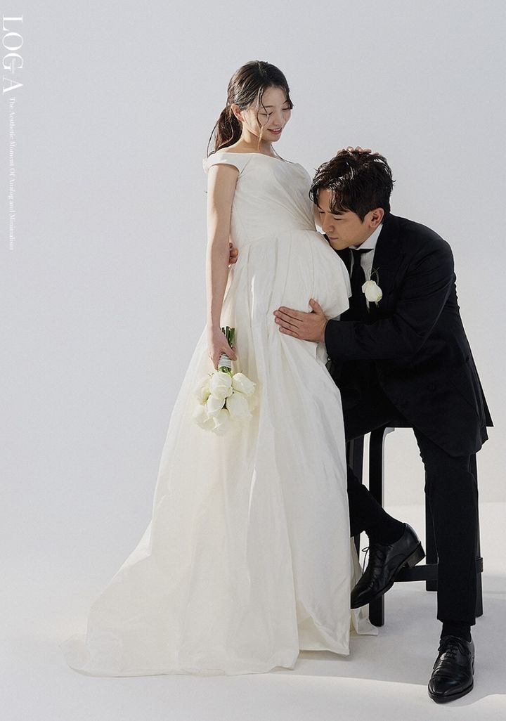 イ・ミヌ、妊娠中の花嫁とパチリ…美しいマタニティスタイル