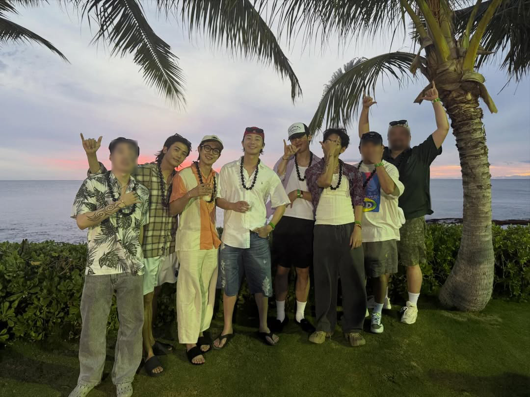 アイドルグループ防弾少年団(BTS)のVが、仲良しグループ「ウガファミリー」のメンバーをはじめ知人たちと一緒に出掛けたハワイ旅行の写真を公開した。