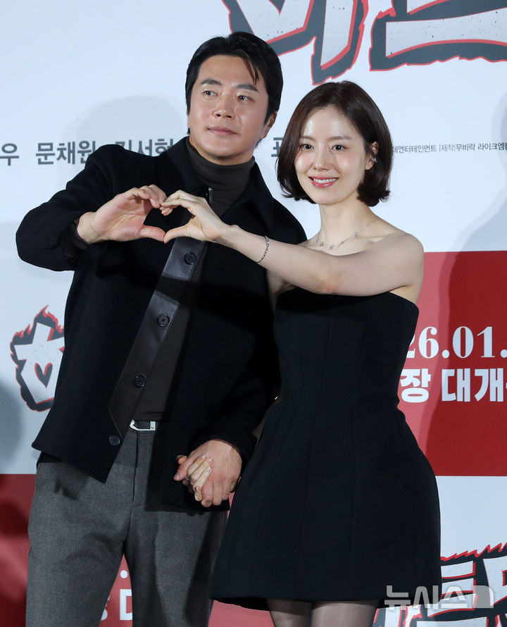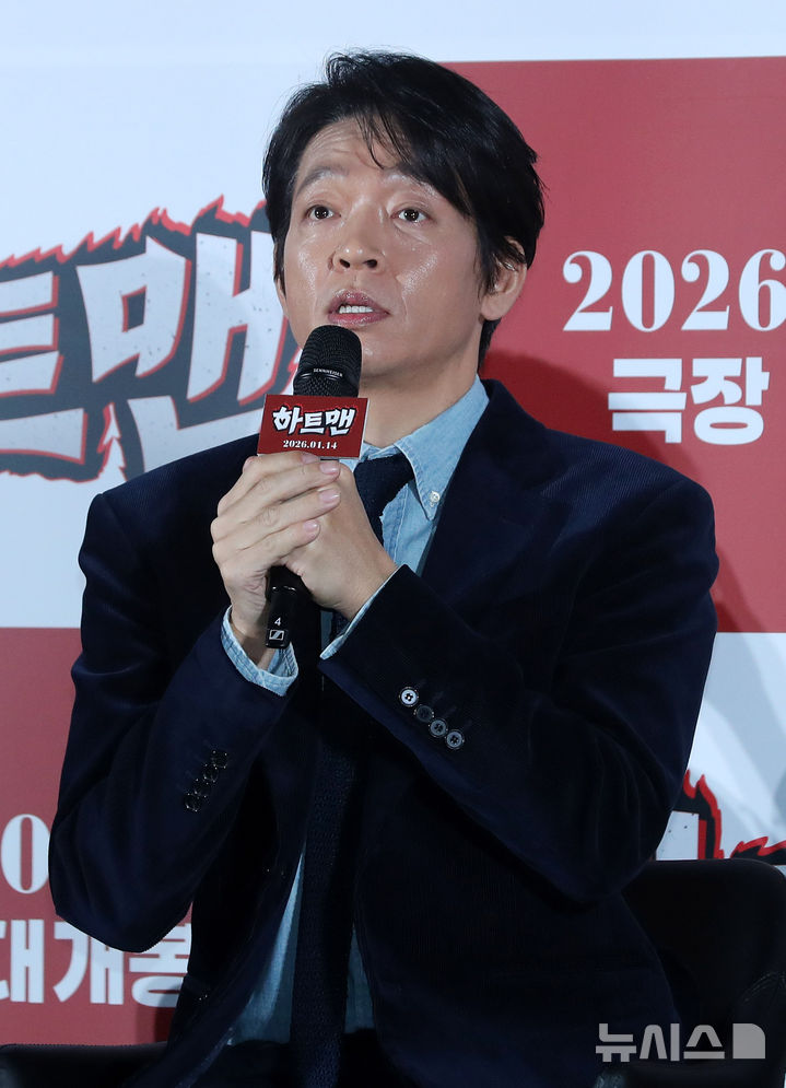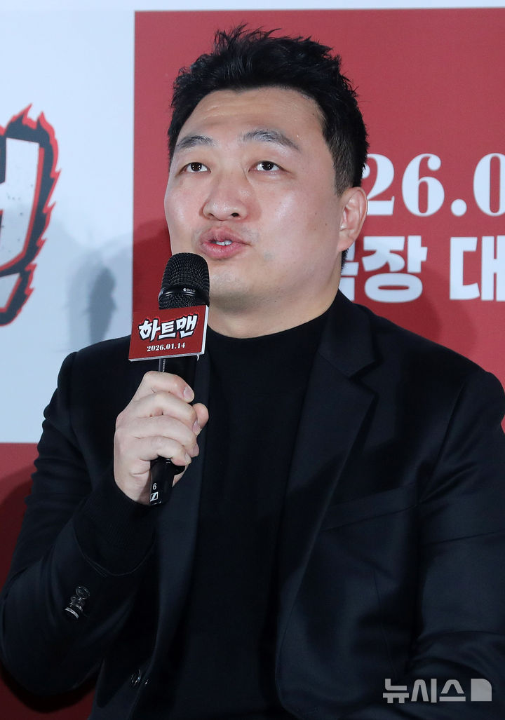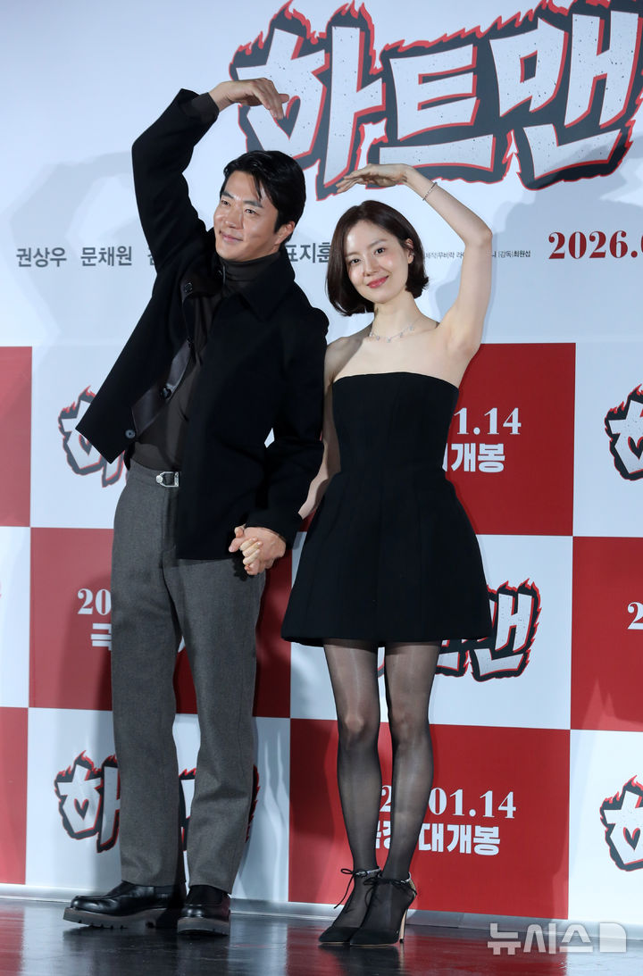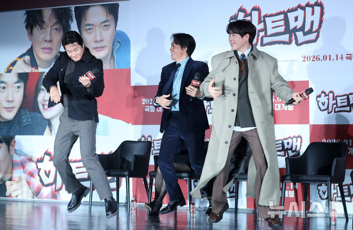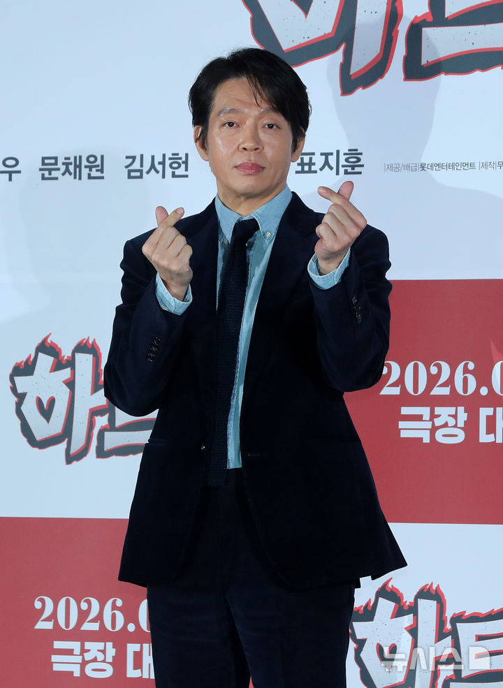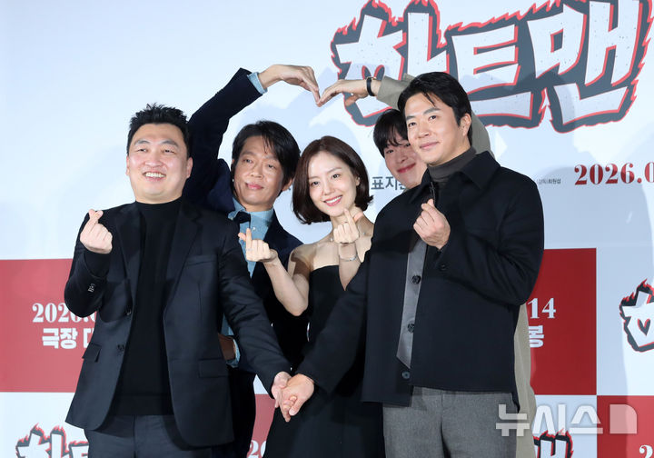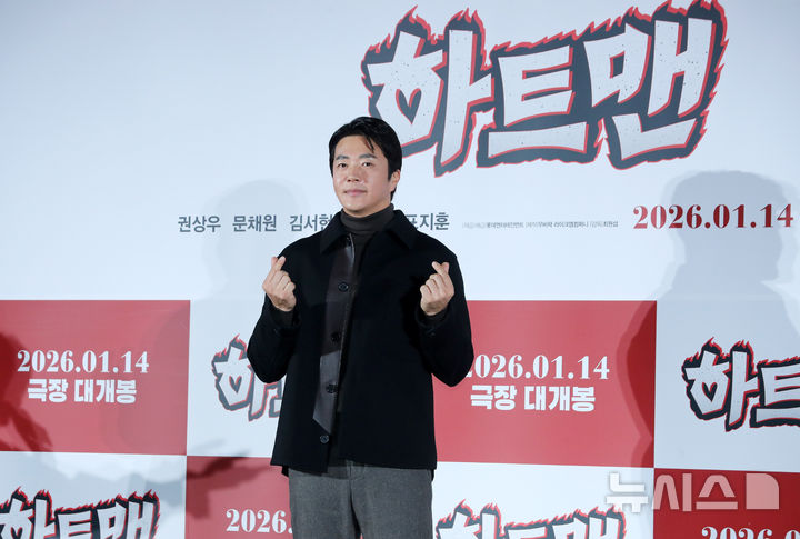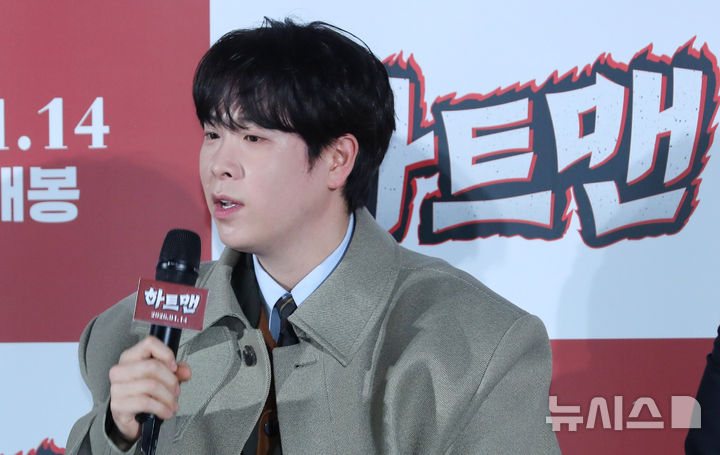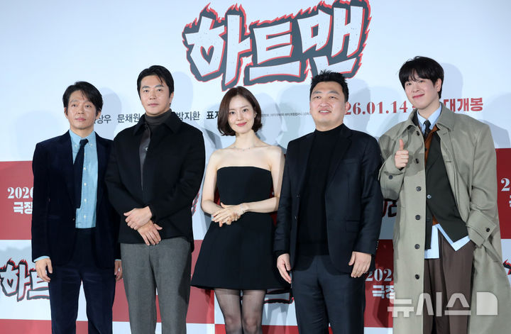 クォン・サンウ、ムン・チェウォン、パク・ジファン、P.O(ピョ・ジフン)、そしてチェ・ウォンソプ監督が11日午前、ソウル市広津区の映画館「ロッテシネマ建大入口」で開催された映画『ハートマン』の制作発表会に出席した。
