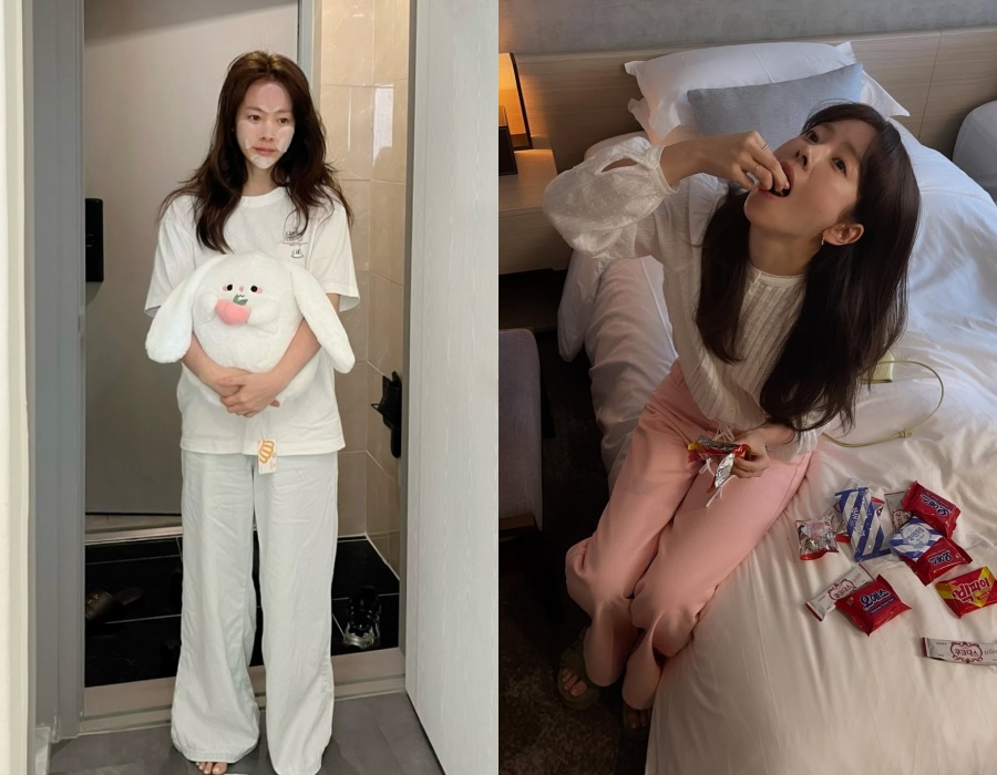 公開された写真を見ると、ぬいぐるみを抱いたハン・ジミンが顔にパックをしてぼーっとしている。また、ベッドの..