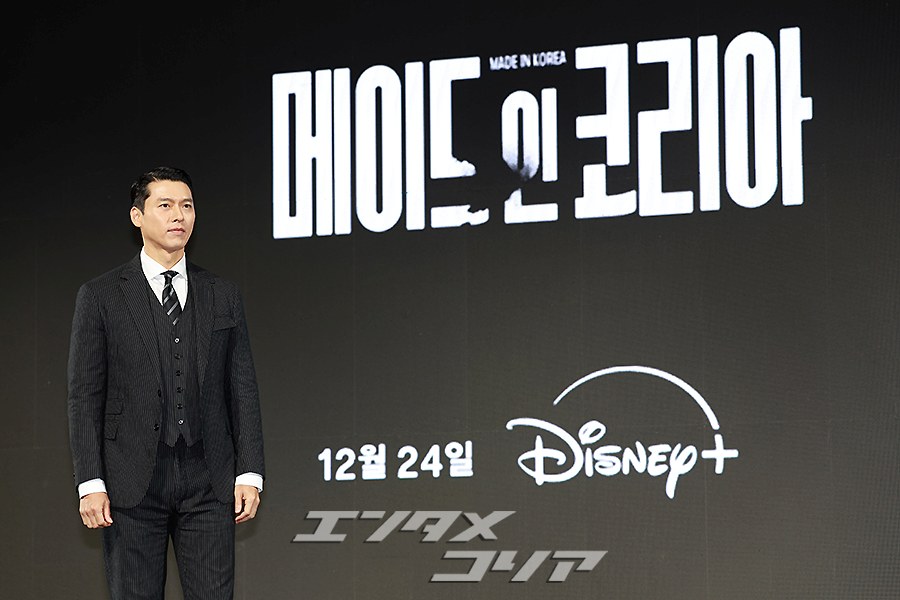 ウ・ミンホ監督をはじめ、俳優ヒョンビン、チョン・ウソン、ウ・ドファン、ソ・ウンス、ウォン・ジアン、チョン・ソンイル、カン・ギルウ、ノ・ジェウォン、パク・ヨンウらが15日午前、ソウル市内のホテル「グランド・インターコンチネンタル・ソウル・パルナス」で行われたDisney+オリジナル・シリーズ『メイド・イン・コリア』の制作発表会に出席し、記念撮影をした。