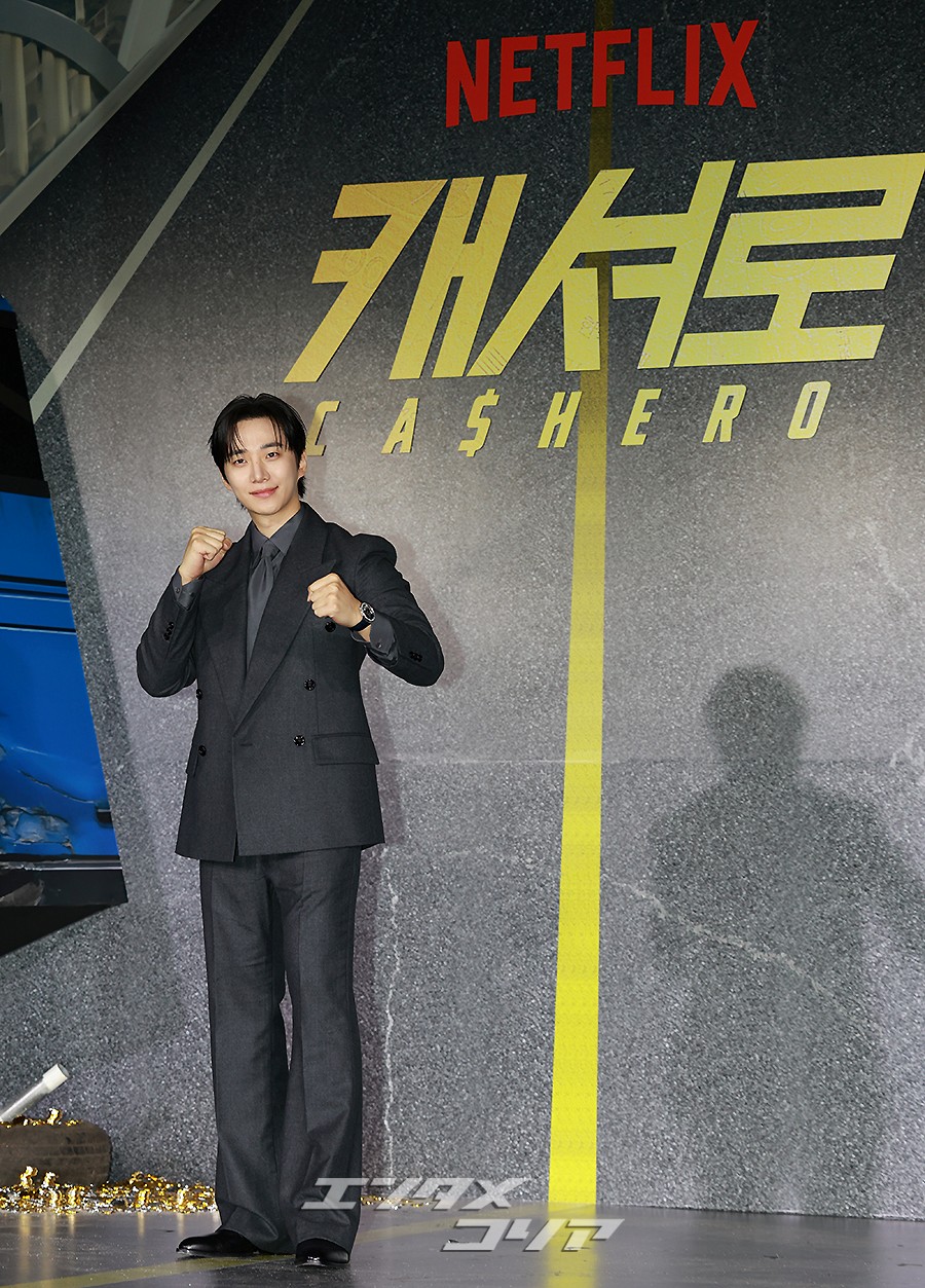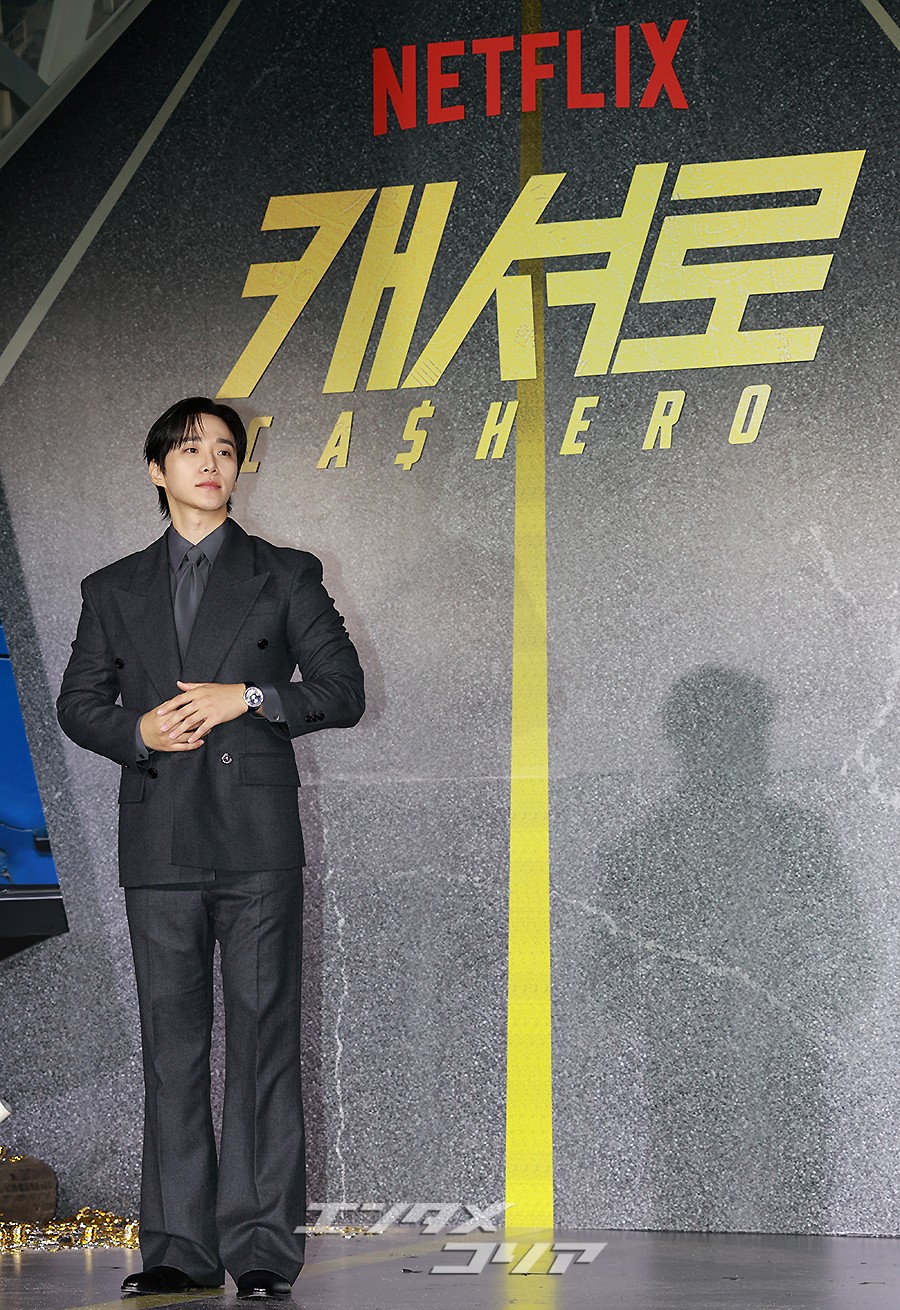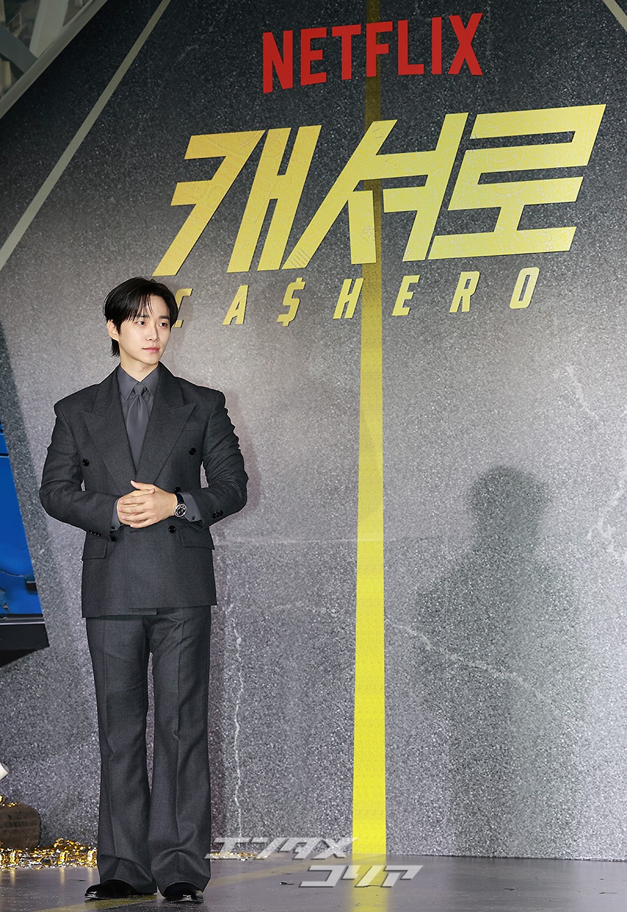 俳優イ・チェミン、キム・ヘジュン、2PMのジュノことイ・ジュノ、キム・ヒャンギ、キム・ビョンチョル、カン・ハンナ、イ・チャンミン監督(写真左から)が22日午前、ソウル市江南区三成洞のウェスティン・ソウル・パルナスで行われた動画配信サービス「NETFLIX」オリジナルシリーズ『CASHERO〜ヒーローは現金を持つ〜』の制作発表会に出席した。