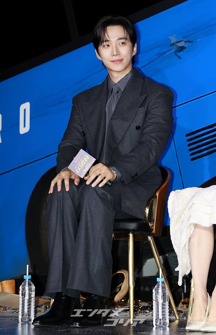 俳優イ・チェミン、キム・ヘジュン、2PMのジュノことイ・ジュノ、キム・ヒャンギ、キム・ビョンチョル、カン・ハンナ、イ・チャンミン監督(写真左から)が22日午前、ソウル市江南区三成洞のウェスティン・ソウル・パルナスで行われた動画配信サービス「NETFLIX」オリジナルシリーズ『CASHERO〜ヒーローは現金を持つ〜』の制作発表会に出席した。
