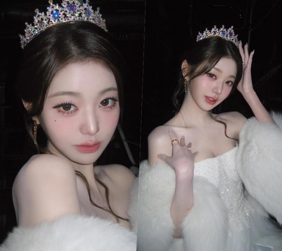 公開された写真を見ると、チャン・ウォニョンは白いベアトップ・ドレスにァーのストールを合わせている。宝石がぎっしり散りばめられたティアラ、控えめなメイク、はっきりした目鼻立ちが、まさに照明の代わりになっている。指先を唇に当てたり、顔を包み込むようなポーズの写真では、愛らしさと余裕が同時に感じられる。
