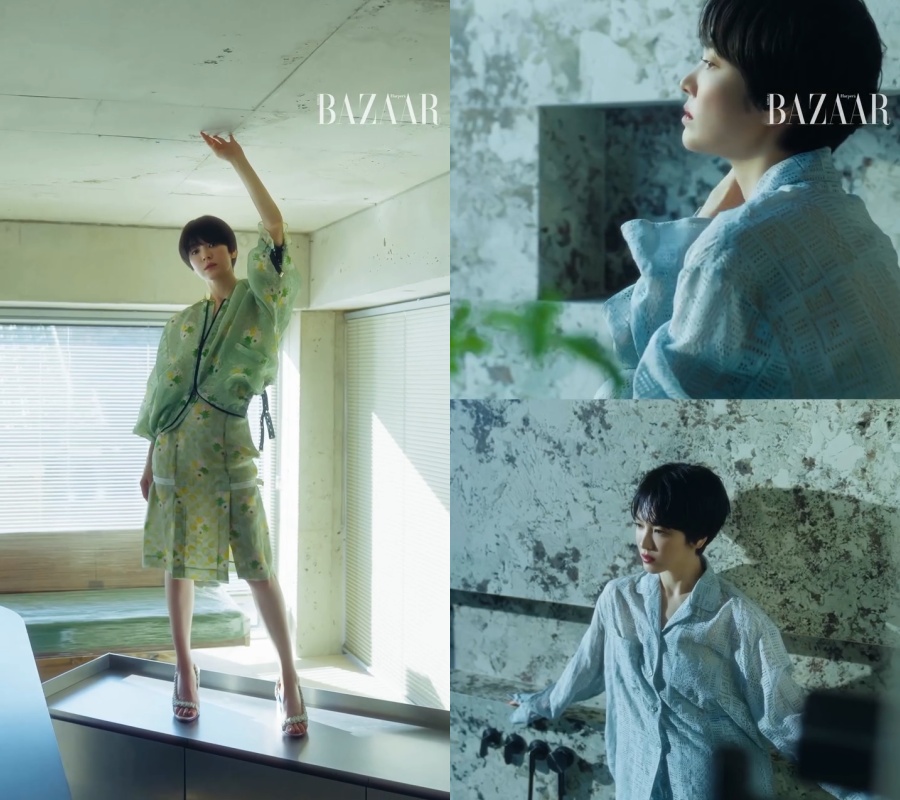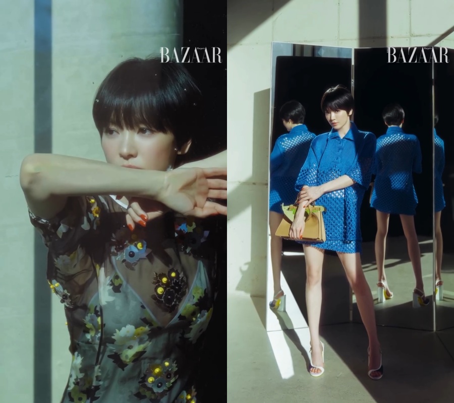 公開された動画を見ると、ソン・ヘギョは1本の芸術映画のようなグラビアで、あらためて格の違いを見せつけている。控えめな表情やしっかりとした眼差し、そして空間を支配するような態度が、各カットに鮮明に盛り込まれている。ソン・ヘギョはショートヘアに花柄の衣装を合わせたり、構造的なシルエットのアイテムを完璧に着こなしている。