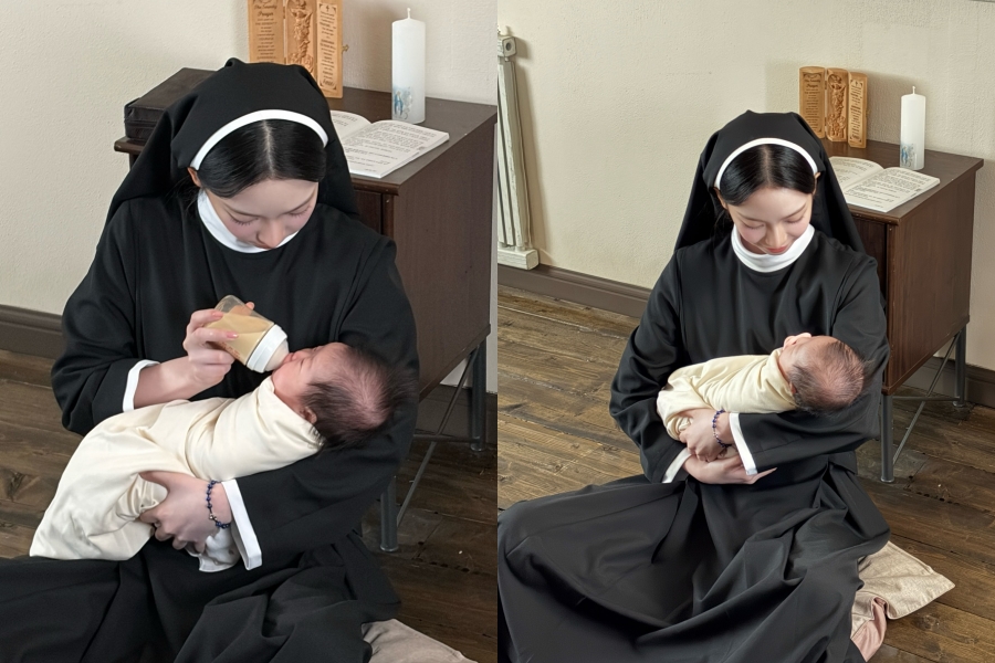 【Pickcon】女性アイドルグループaespaのメンバー、カリナが修道女ラファエラを演じた際のオフショットを公開した。