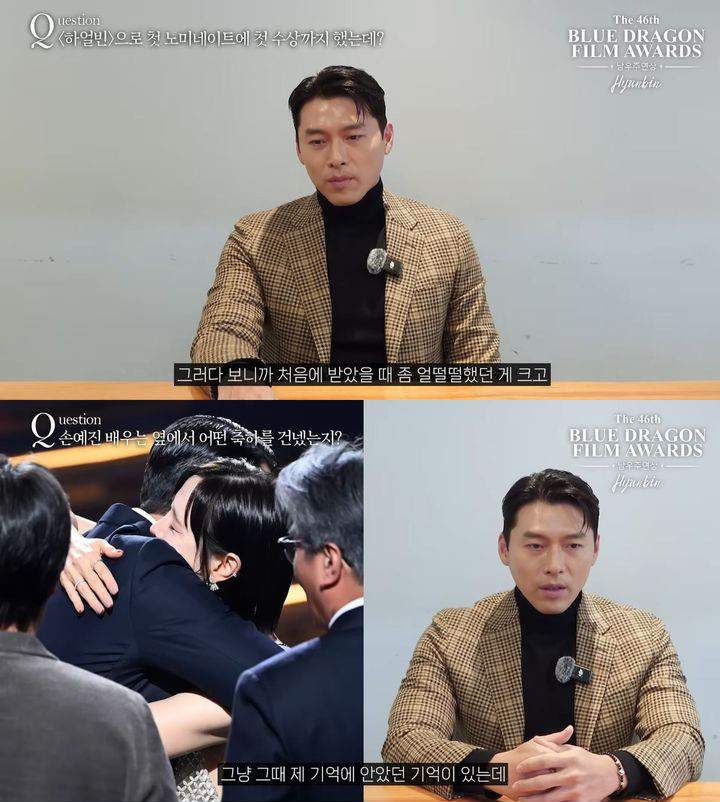 ヒョンビンは映画『ハルビン』で「第46回青龍映画賞」の主演男優賞を受賞した。インタビューでは「正直言って受賞できるとは思..