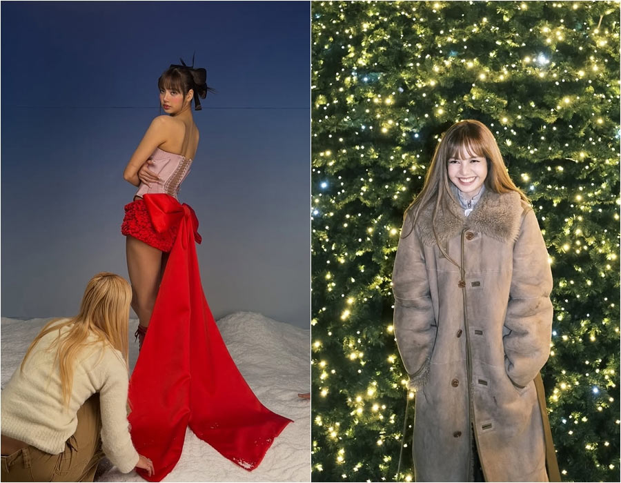 公開された写真でリサは、さまざまな場所で美しいスタイルを披露し、視線を引き付けた。黒いシースルーのワンピース、大きな赤いリボンがポイントのドレス、そしてクリスマスツリーの前での愛らしい姿など、多彩な魅力をありのまま伝えた。