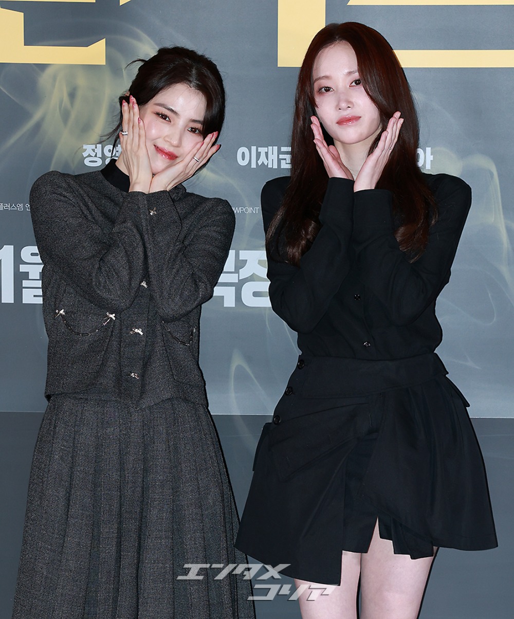 この日、試写会と記者懇談会には俳優チョン・ヨンジュ、キム・シンロク、ハン・ソヒ、チョン・ジョンソ、キム・ソンチョル、イ・ジェギュン、OH MY GIRLユア(写真左から)が出席した。