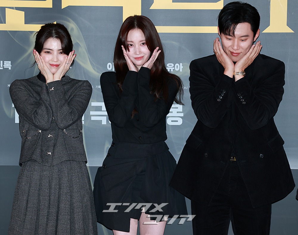 この日、試写会と記者懇談会には俳優チョン・ヨンジュ、キム・シンロク、ハン・ソヒ、チョン・ジョンソ、キム・ソンチョル、イ・ジェギュン、OH MY GIRLユア(写真左から)が出席した。