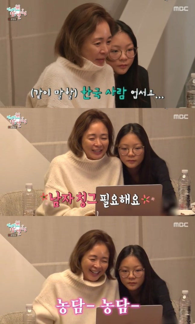 SHIHOは娘の紗蘭(サラン)さんと一緒に座り、ビデオ通話で韓国語のレッスンを受けた。