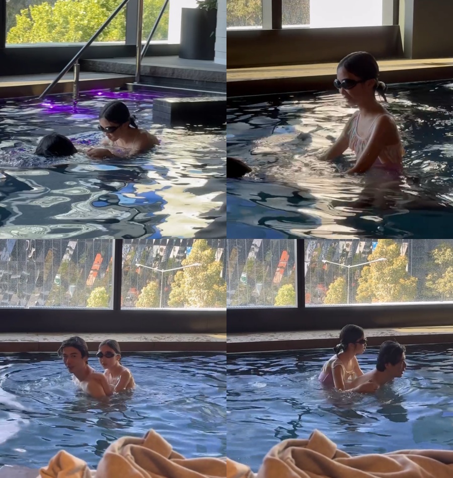 このたび公開された写真を見ると、ハン・ヘジンはメルボルンの街をバックにポーズを取っている。また、奇誠庸と娘がプールで潜水しながら遊ぶ動画や、道を歩いている後ろ姿を収めた写真もある。