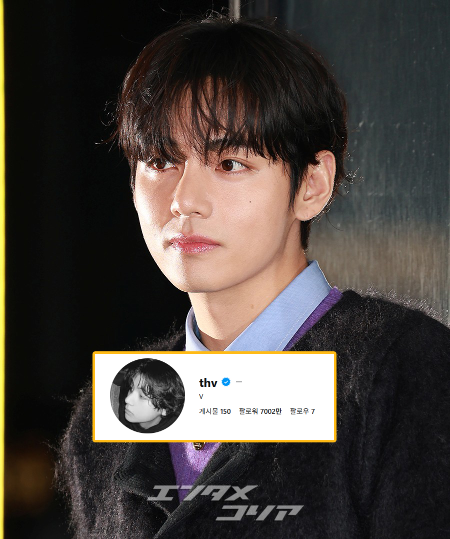 13日現在、写真共有SNS「インスタグラム」に開設されたVの個人アカウントのフォロワー数は7000万人を突破している。これは、韓国の男性芸能人としては初めての記録で、世界的な影響力をあらためて立証した。