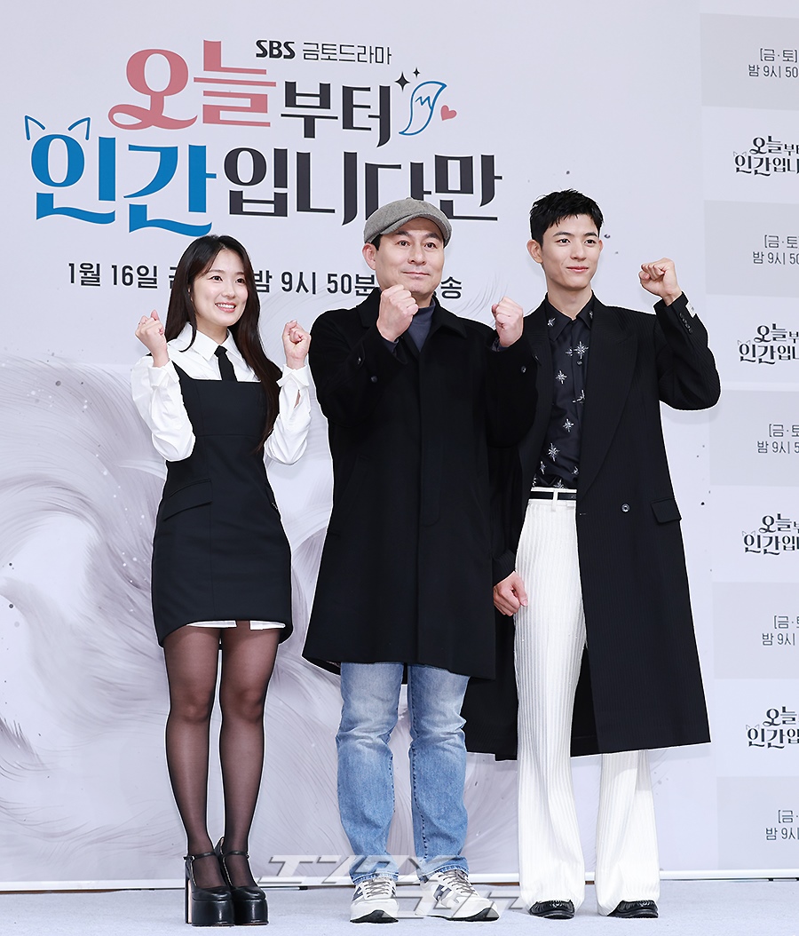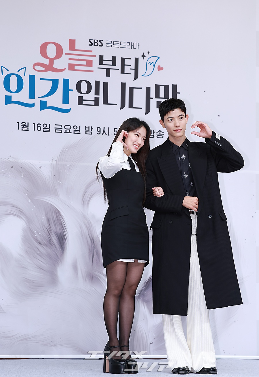 ソウル市陽川区木洞のSBSで16日、金土ドラマ『今日から“ニンゲン”に転身しました』(キム・ジョングォン監督)の制作発表会が開かれた。制作発表会には俳優キム・ヘユンとロモンが出席し、写真撮影に応じた。