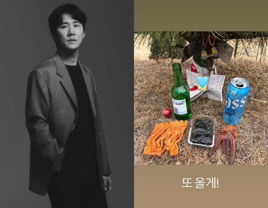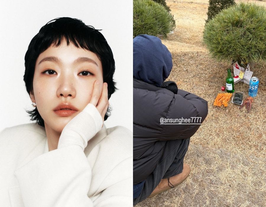 写真を見るとキム・ゴウンは、ナ・チョルさんが眠っている場所を訪れたようだ。キム・ゴウンは焼酎1本とビール1缶、のりやイカなどを、心を込めて並べた。今回、ナ・チョルさんの死から3年たつのに先立ち、訪問したものとみられる。