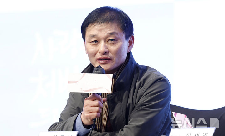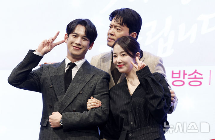 【NEWSIS】俳優キム・スンス、チン・セヨン、ユ・ホジョン、ハン・ジュンソ監督、ソ・イヒョン、パク・ギウン、キム・ヒョンムク(写真左から)が28日午後、ソウル市九老区のTHE SAINTで開かれたKBS第2新週末ドラマ『愛を処方いたします』の制作発表会でポーズを取っているところ。