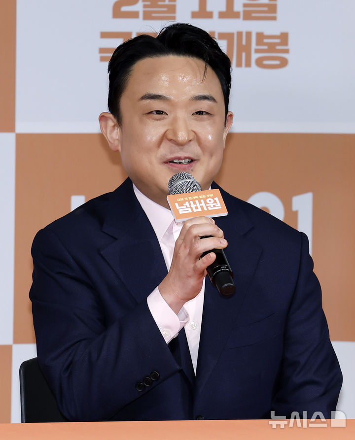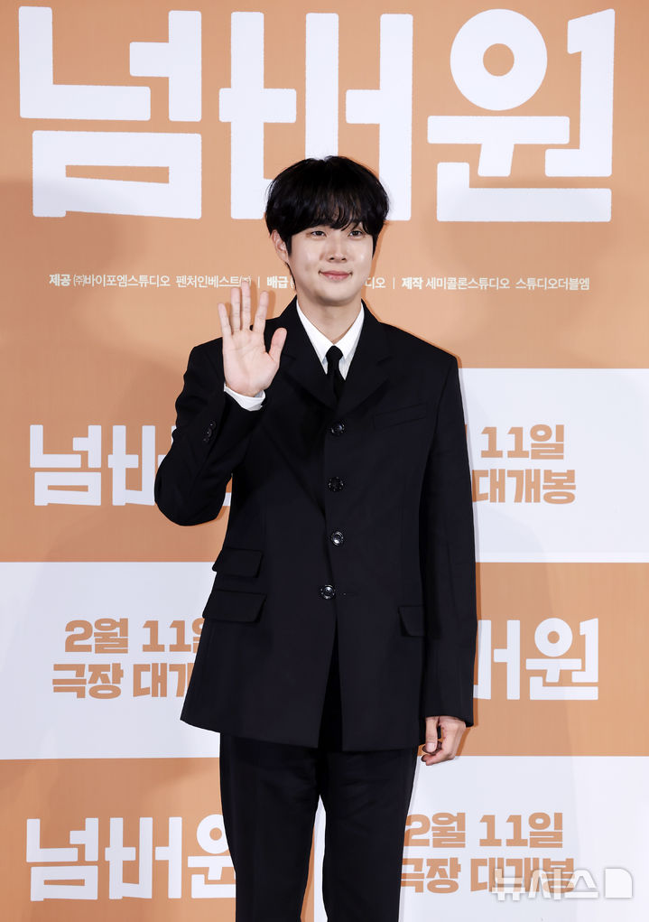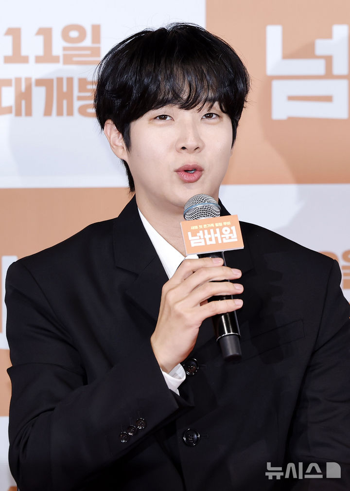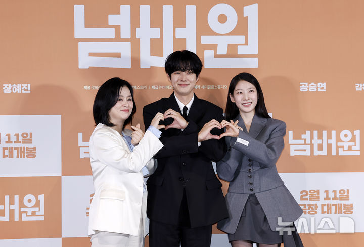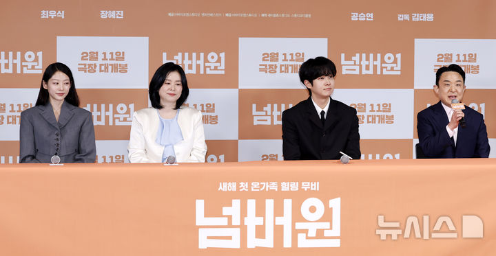 俳優コン・スンヨン、キム・テヨン監督、チャン・ヘジン、チェ・ウシク(写真左から)が29日午後、ソウル市竜山区の映画館「CGV竜山アイパークモール」で開かれた映画『ナンバーワン』(キム・テヨン監督)のメディア試写会でポーズを取っているところ。