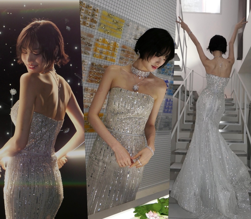 二人が着用していたドレスは「IVAN YOUNG」の2024年春夏クチュール・コレクションのアイテム。また、チャン・ウォニョンが身に着けていたジュエリーは、自分がアンバサダーを務めている「BVLGARI」のアイテムだ。